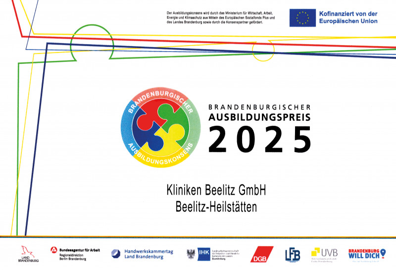 Unter der Schirmherrschaft von Ministerpräsident Dr. Dietmar Woidke zeichnete Wirtschaftsminister Daniel Keller heute in der Staatskanzlei in Potsdam die Kliniken Beelitz – die größte Akutneurologie Ostdeutschlands – und ihre Akademie für ihre herausragenden Ausbildungsangebote mit dem diesjährigen Brandenburgischen Ausbildungspreis aus.